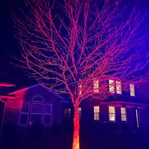 The WS2811 protocol allows you to program the floodlight in any color you choose. Great to add some pop to your props or even your house.